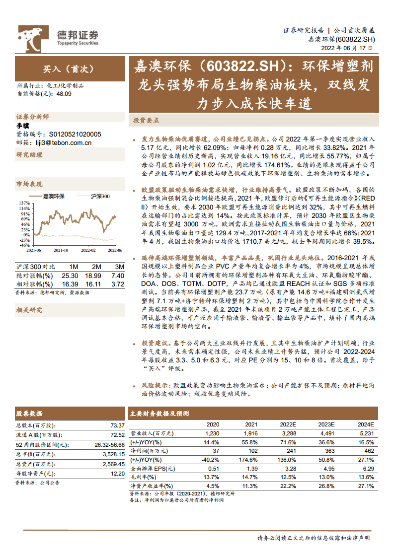 环保增塑剂龙头强势布局生物柴油板块,双线发力步入成长快车道