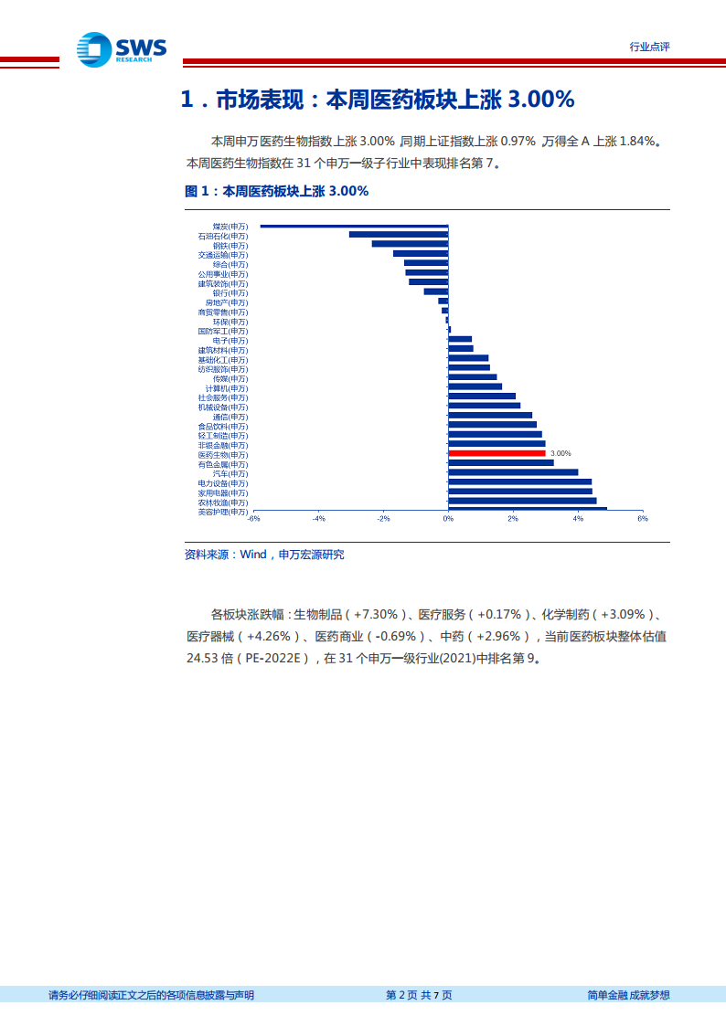 医药行业周报:本周医药上涨3.00%,建议关注稳定高景气、需求复苏和政策面改善三大方向