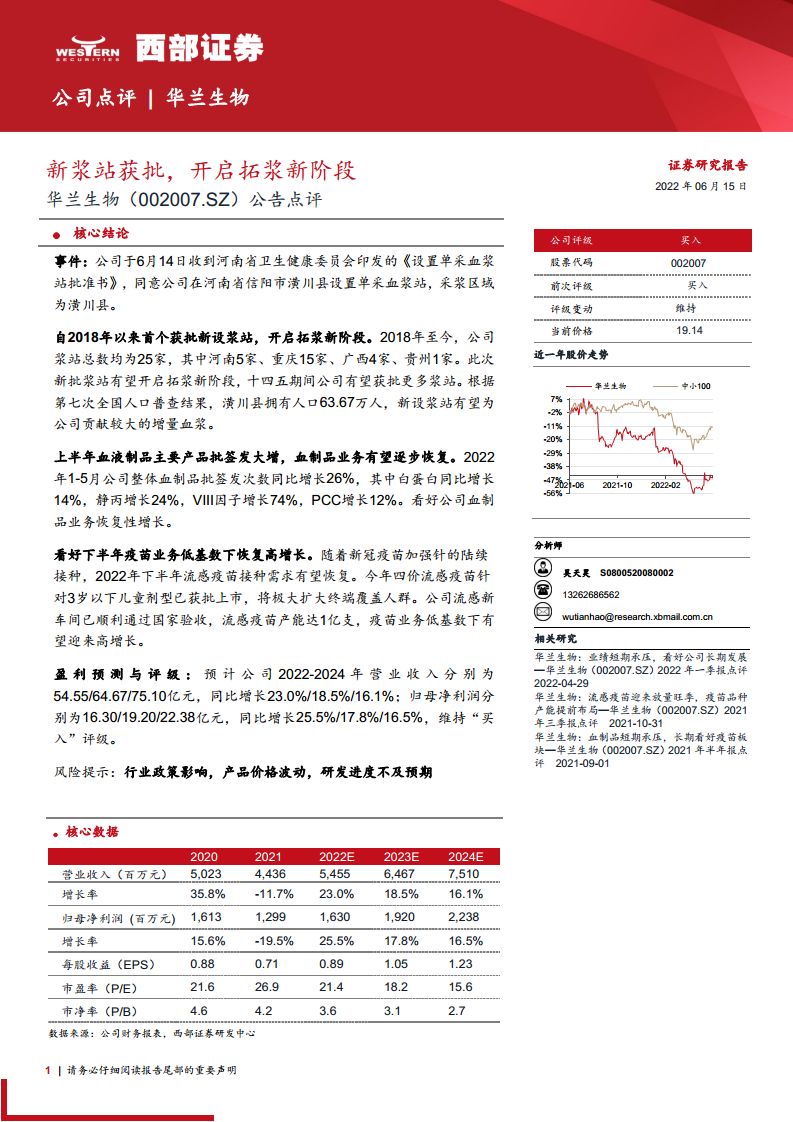华兰生物(002007):新浆站获批,开启拓浆新阶段