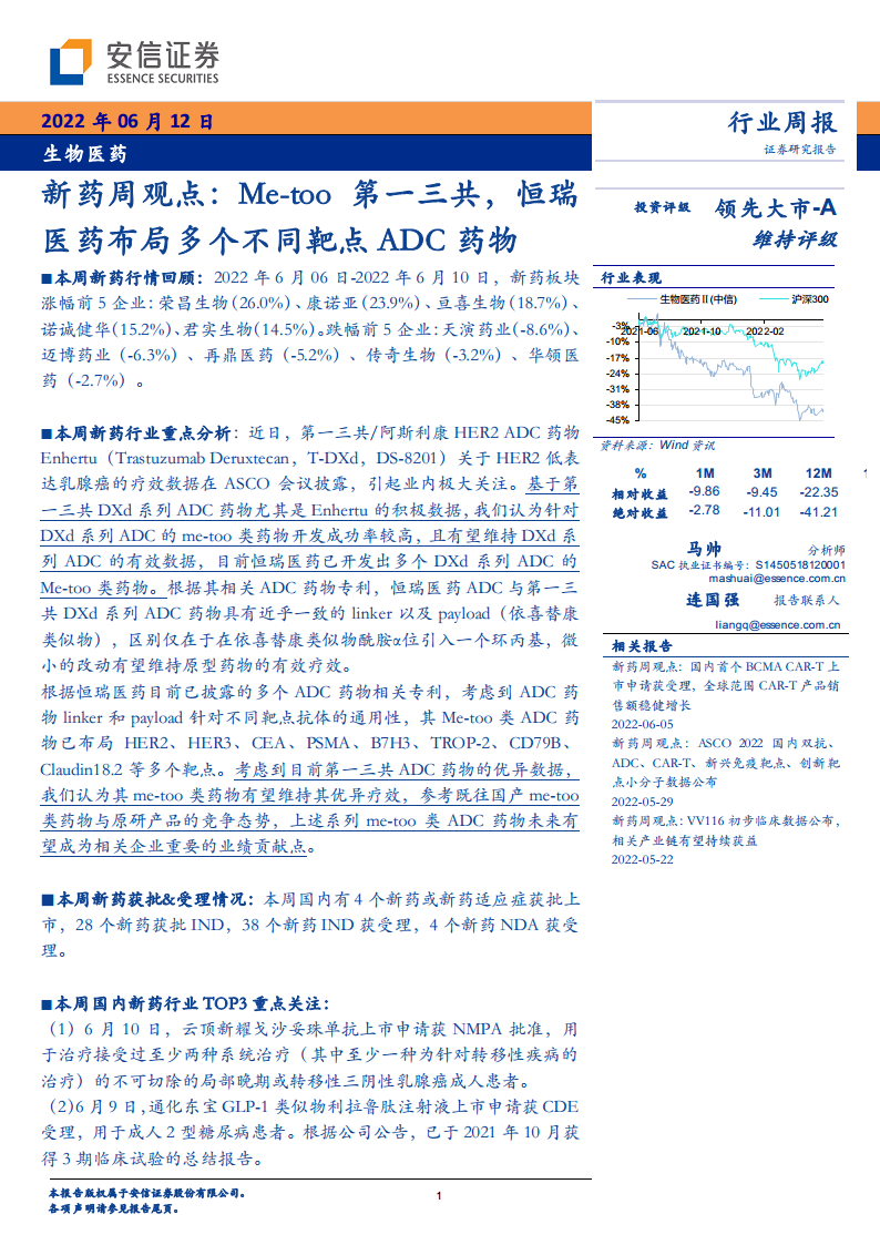 新药周观点:Me-too第一三共,恒瑞医药布局多个不同靶点ADC药物