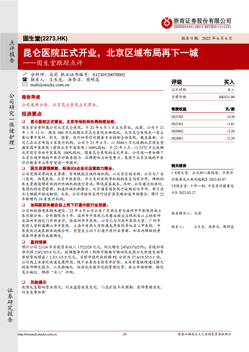 固生堂(02273)跟踪点评:昆仑医院正式开业,北京区域布局再下一城