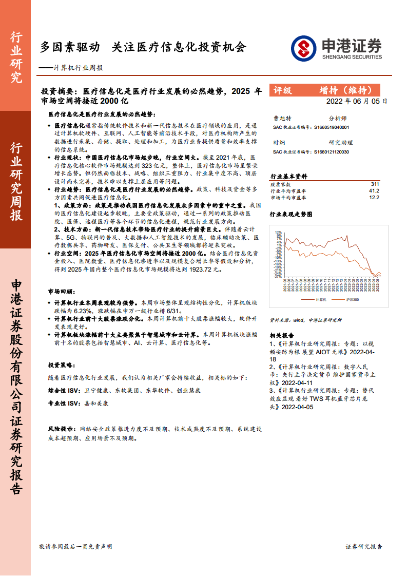 计算机行业周报:多因素驱动 关注医疗信息化投资机会