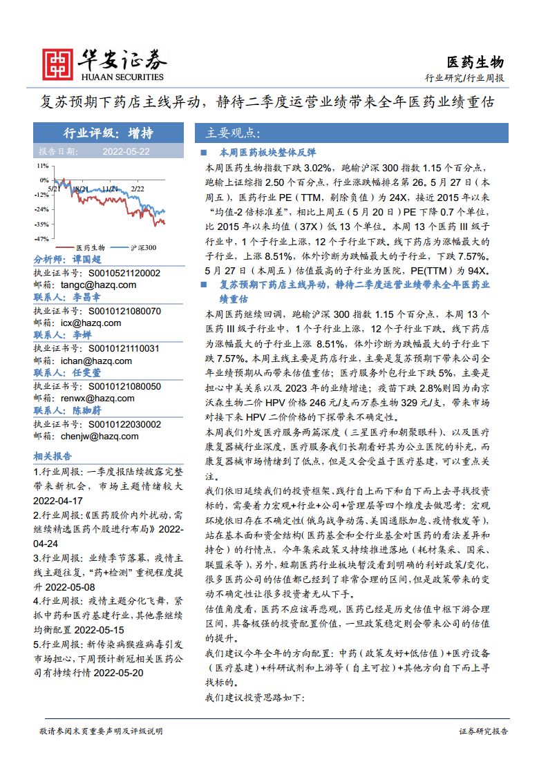医药生物行业周报:复苏预期下药店主线异动,静待二季度运营业绩带来全年医药业绩重估