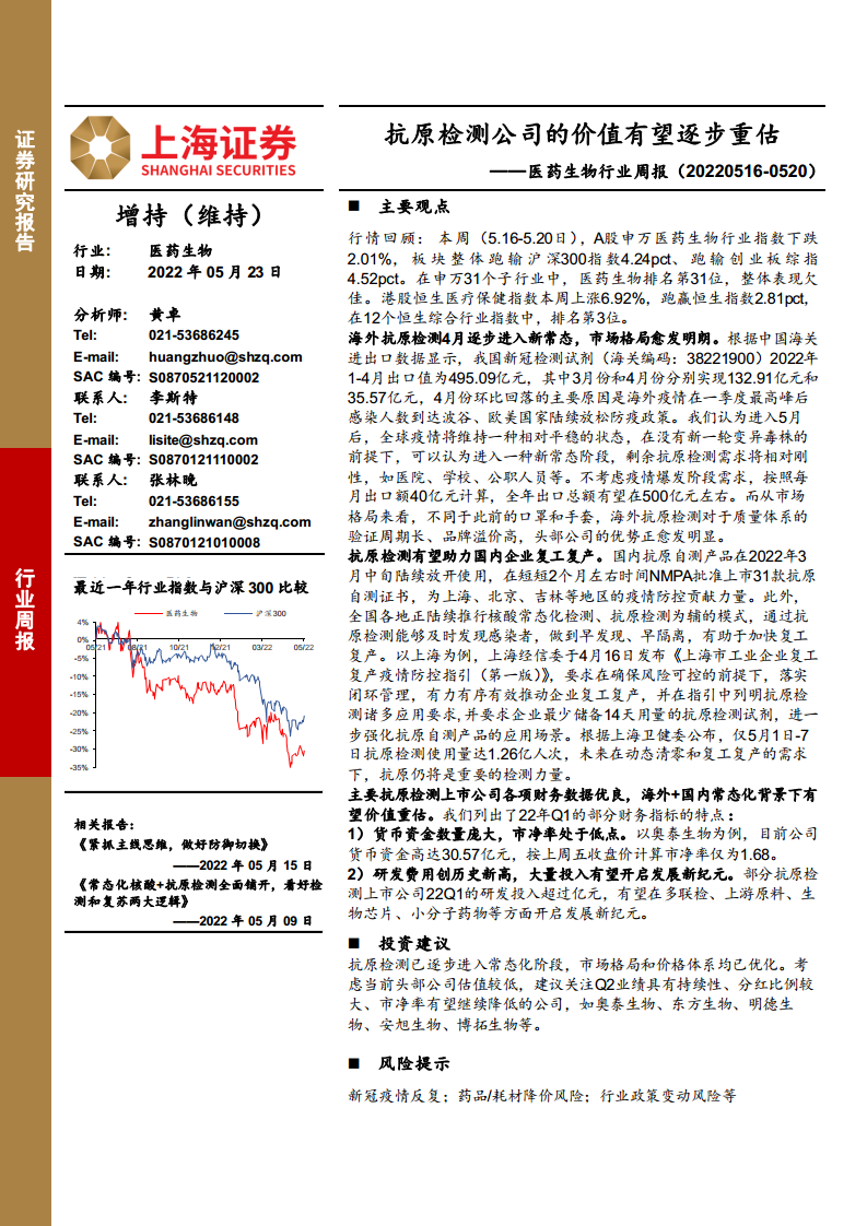 医药生物行业周报:抗原检测公司的价值有望逐步重估