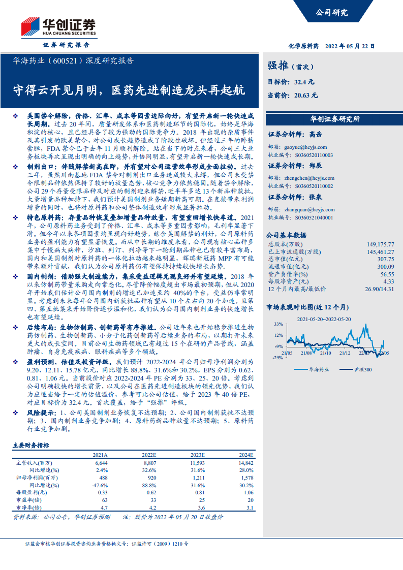 华海药业(600521):守得云开见月明,医药先进制造龙头再起航
