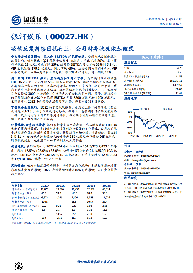 银河娱乐(00027):疫情反复持续困扰行业,公司财务状况依然健康