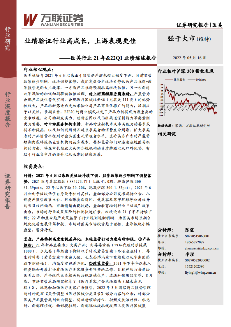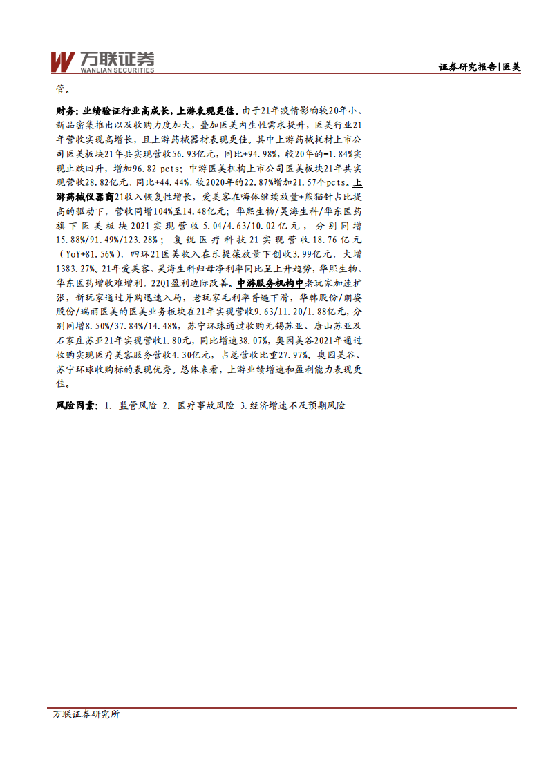 医美行业21年&22Q1业绩综述报告:业绩验证行业高成长,上游表现更佳