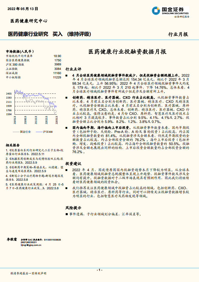 医药健康行业投融资数据月报