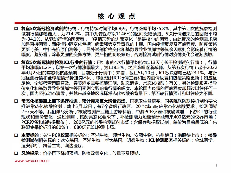 医药:新冠检测历次行情复盘-看当前常态化核酸的空间和未来潜在机会
