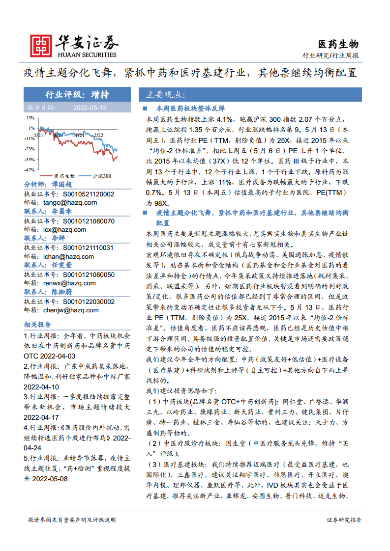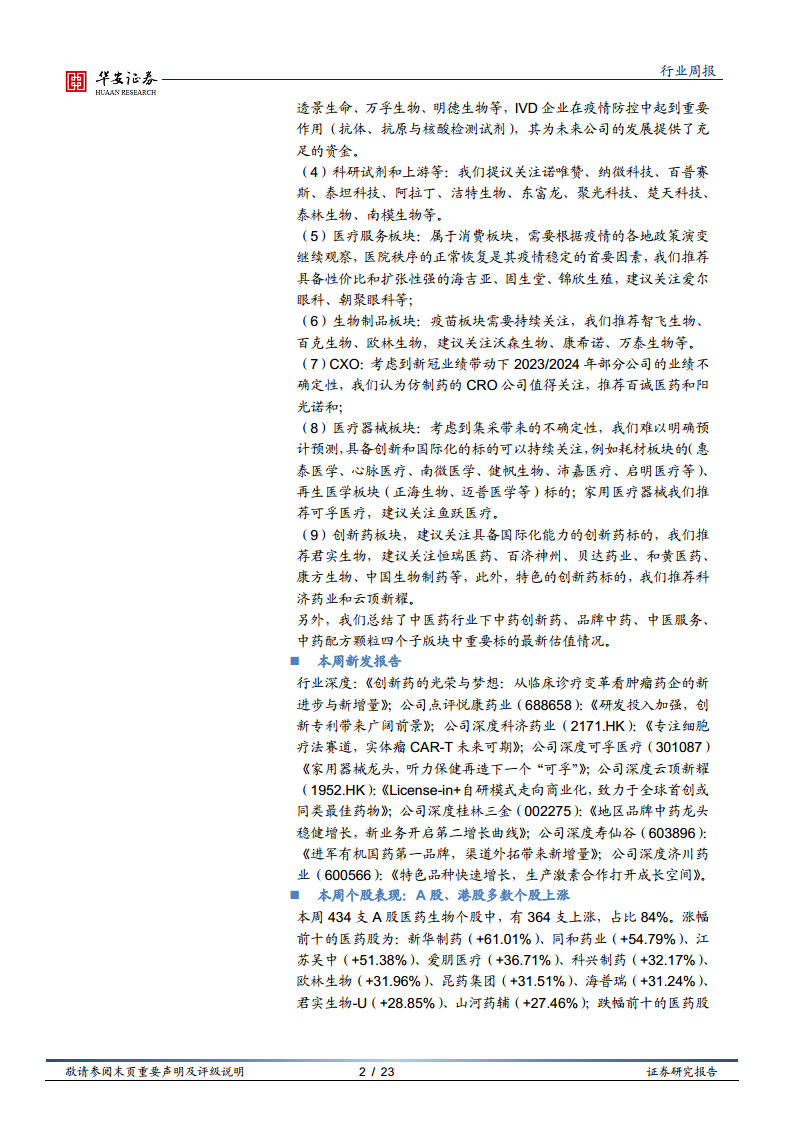医药生物行业周报:疫情主题分化飞舞,紧抓中药和医疗基建行业,其他票继续均衡配置