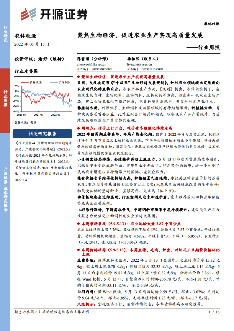 行业周报:聚焦生物经济,促进农业生产实现高质量发展