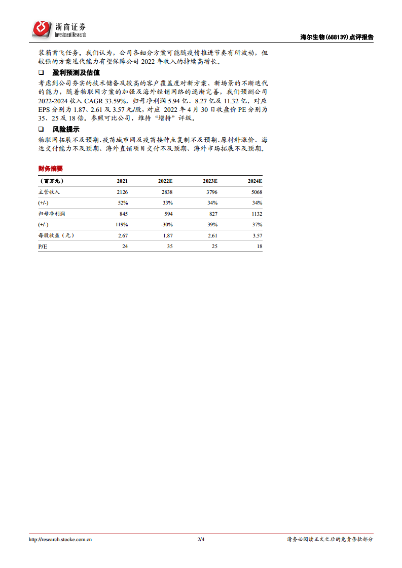 海尔生物2022Q1点评报告:新场景持续迭代,海外拓展加速