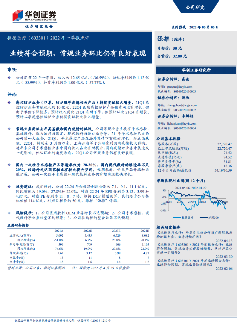振德医疗(603301):业绩符合预期,常规业务环比仍有良好表现