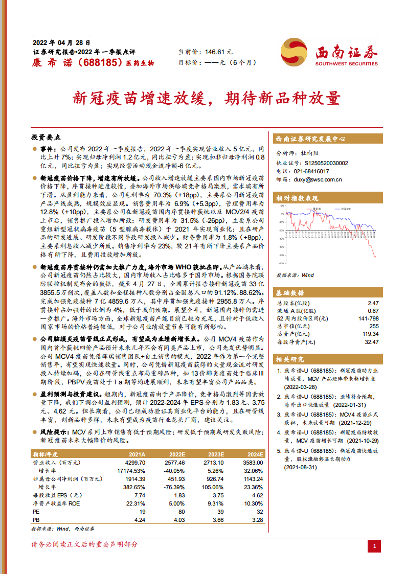 康希诺(688185):新冠疫苗增速放缓,期待新品种放量
