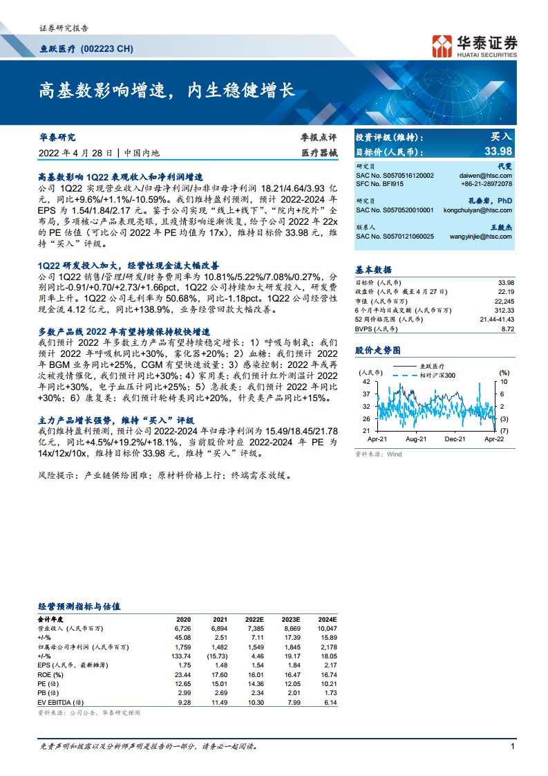 鱼跃医疗(002223):高基数影响增速,内生稳健增长