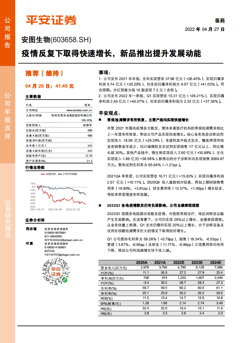 安图生物(603658):疫情反复下取得快速增长,新品推出提升发展动能