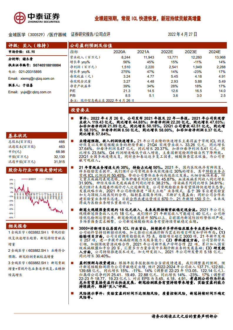 健帆生物(300529):业绩超预期,常规ICL快速恢复,新冠持续贡献高增量