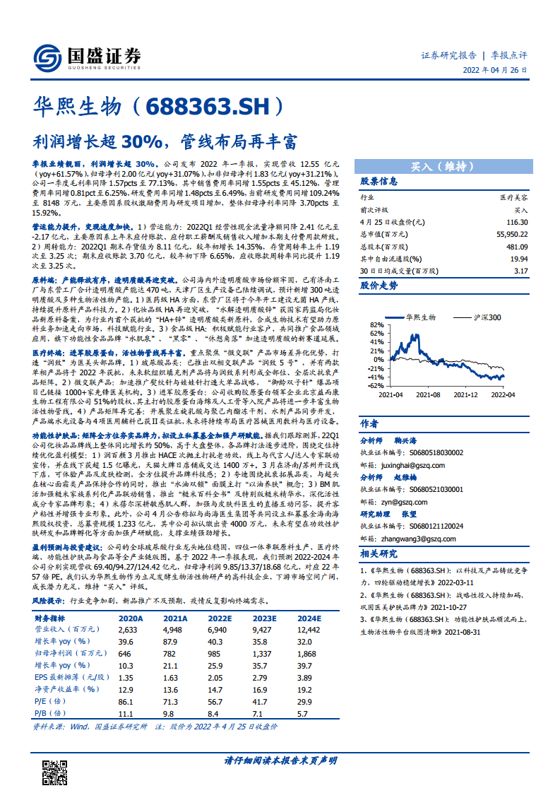 华熙生物(688363):利润增长超30%,管线布局再丰富