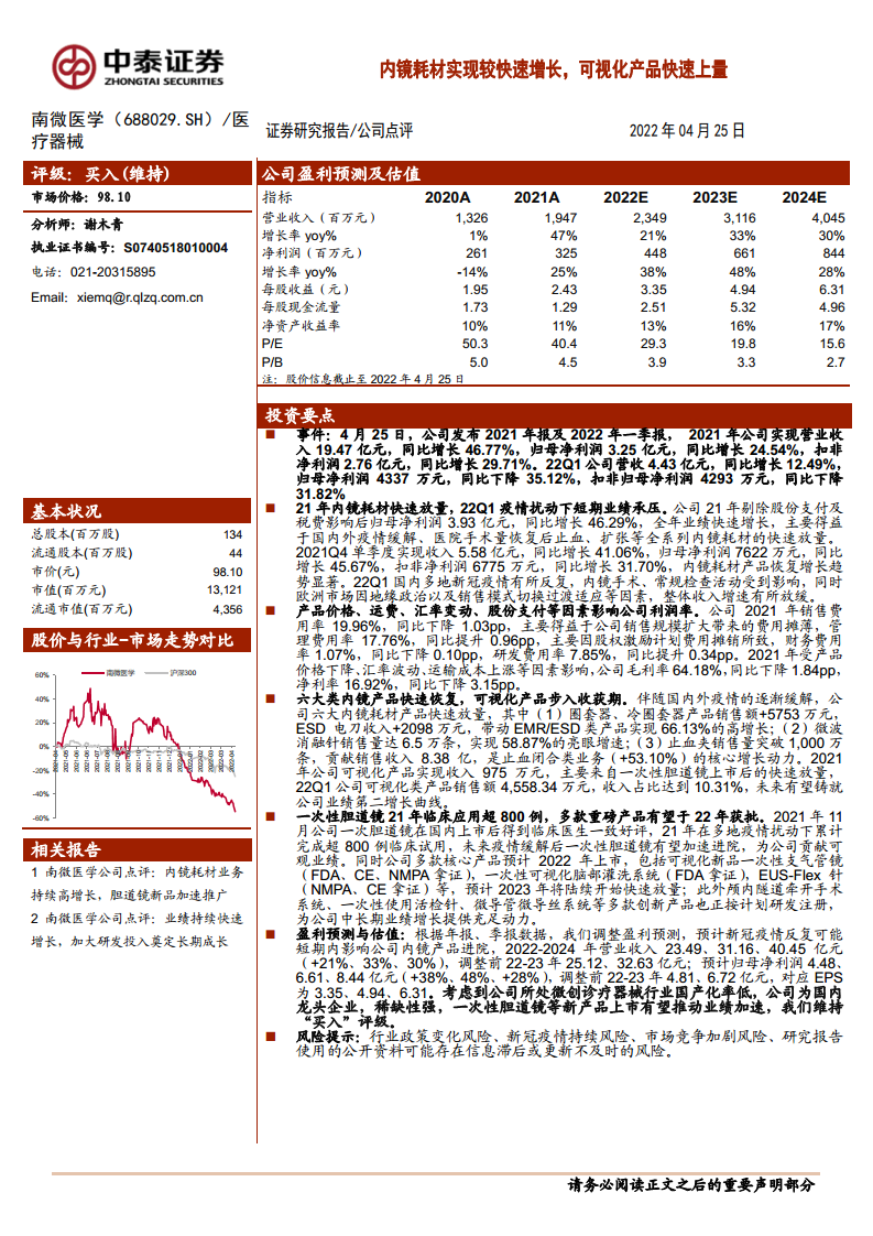 南微医学(688029):内镜耗材实现较快速增长,可视化产品快速上量
