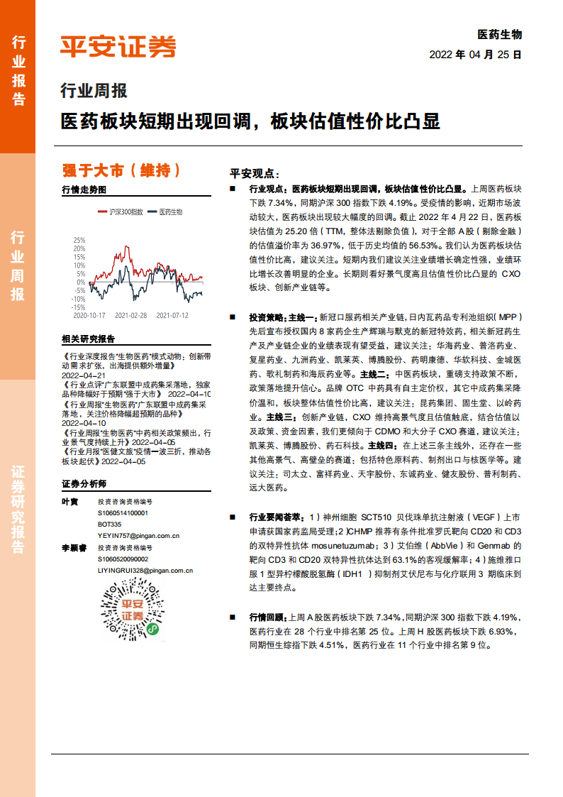 行业周报:医药板块短期出现回调,板块估值性价比凸显