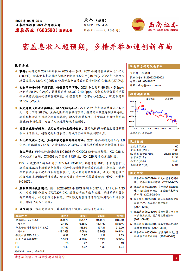 康辰药业(603590):密盖息收入超预期,多措并举加速创新布局