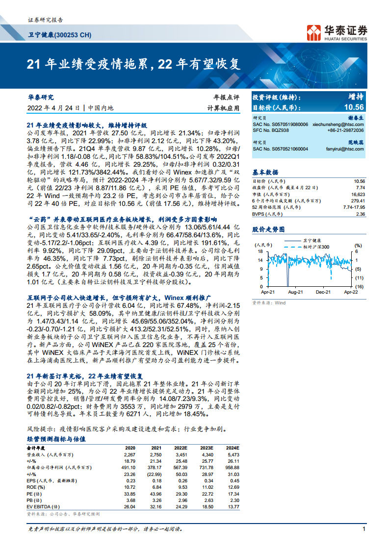 卫宁健康(300253):21年业绩受疫情拖累,22年有望恢复