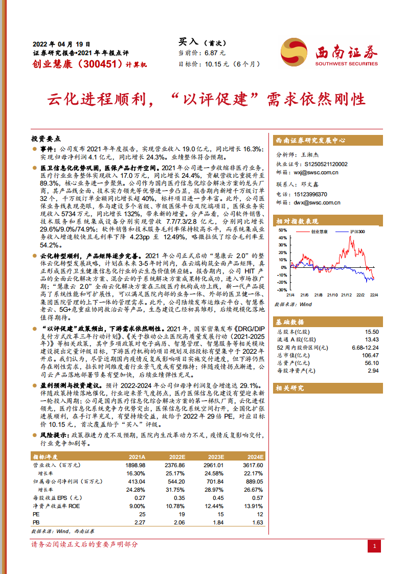 创业慧康(300451):云化进程顺利,“以评促建”需求依然刚性