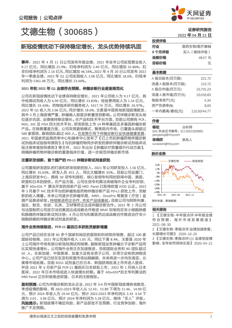艾德生物(300685):新冠疫情扰动下保持稳定增长,龙头优势持续巩固