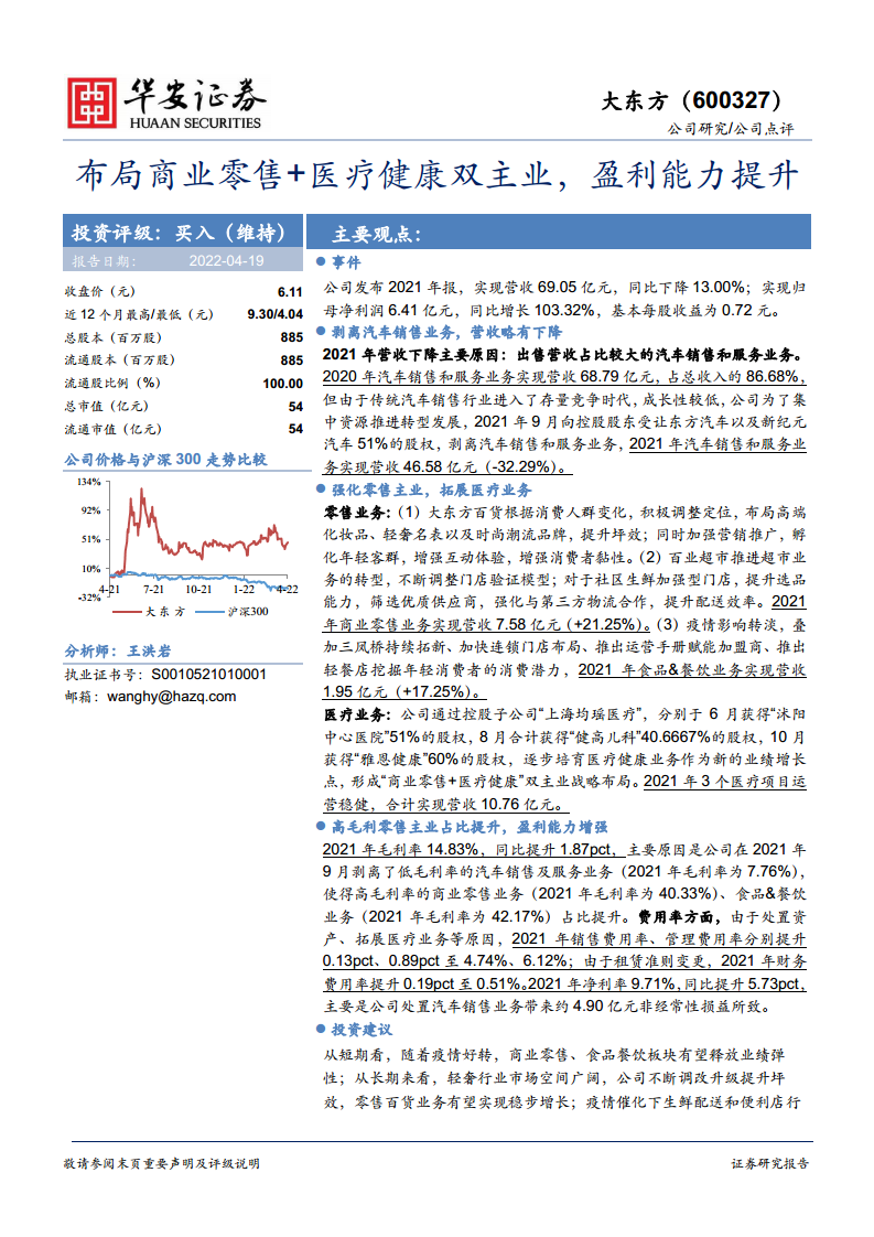 布局商业零售+医疗健康双主业,盈利能力提升