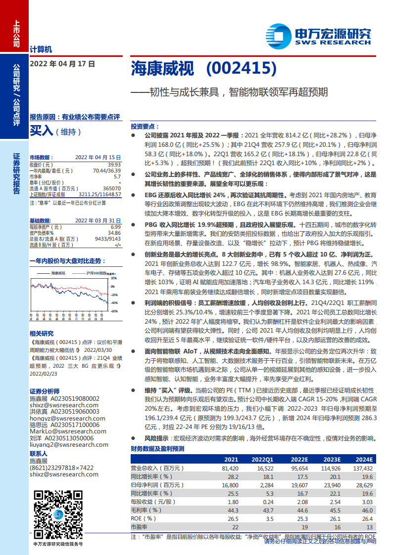 海康威视(002415):韧性与成长兼具,智能物联领军再超预期