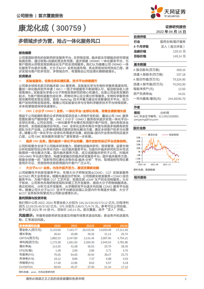康龙化成(300759):多领域步步为营,抢占一体化服务风口