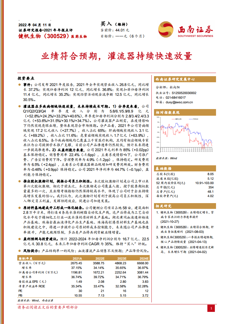 健帆生物(300529):业绩符合预期,灌流器持续快速放量