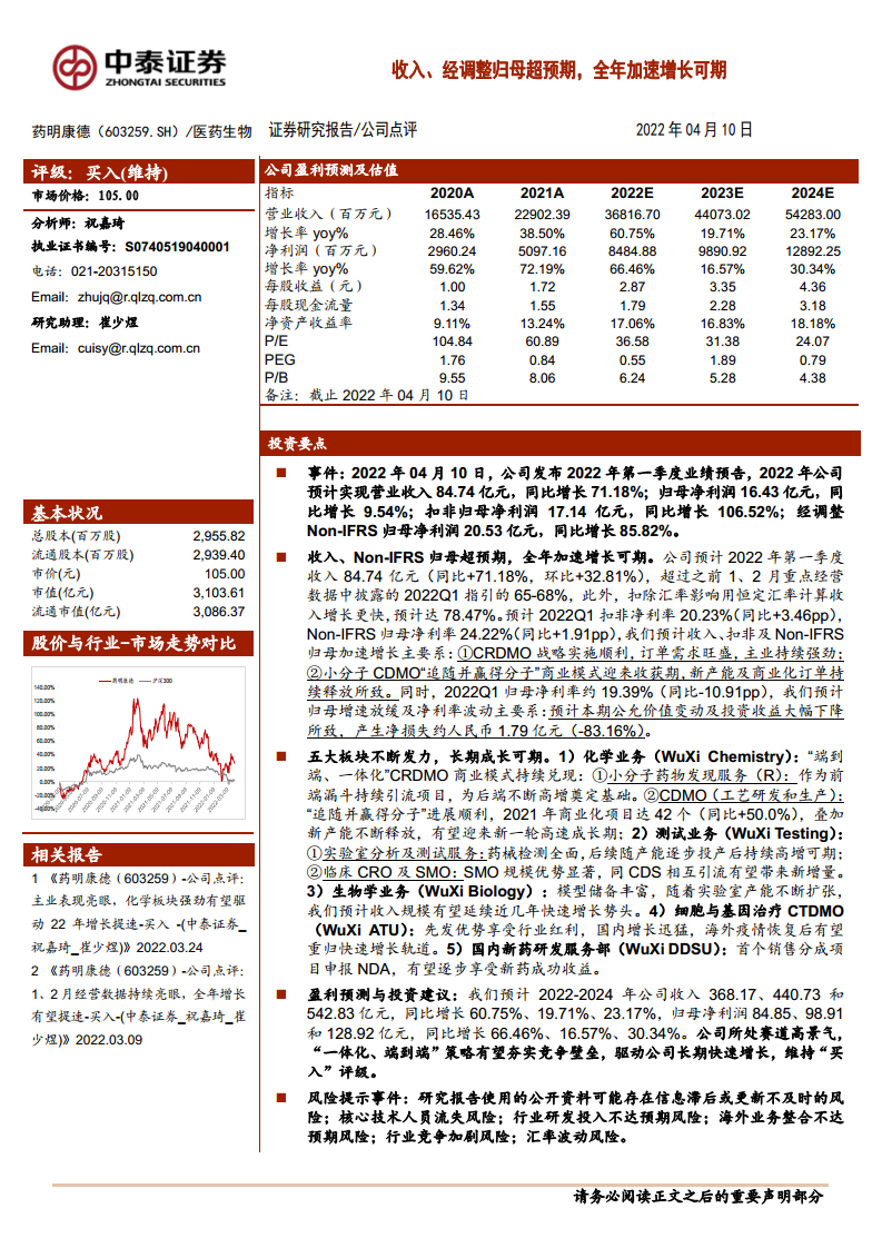 药明康德(603259):收入、经调整归母超预期,全年加速增长可期