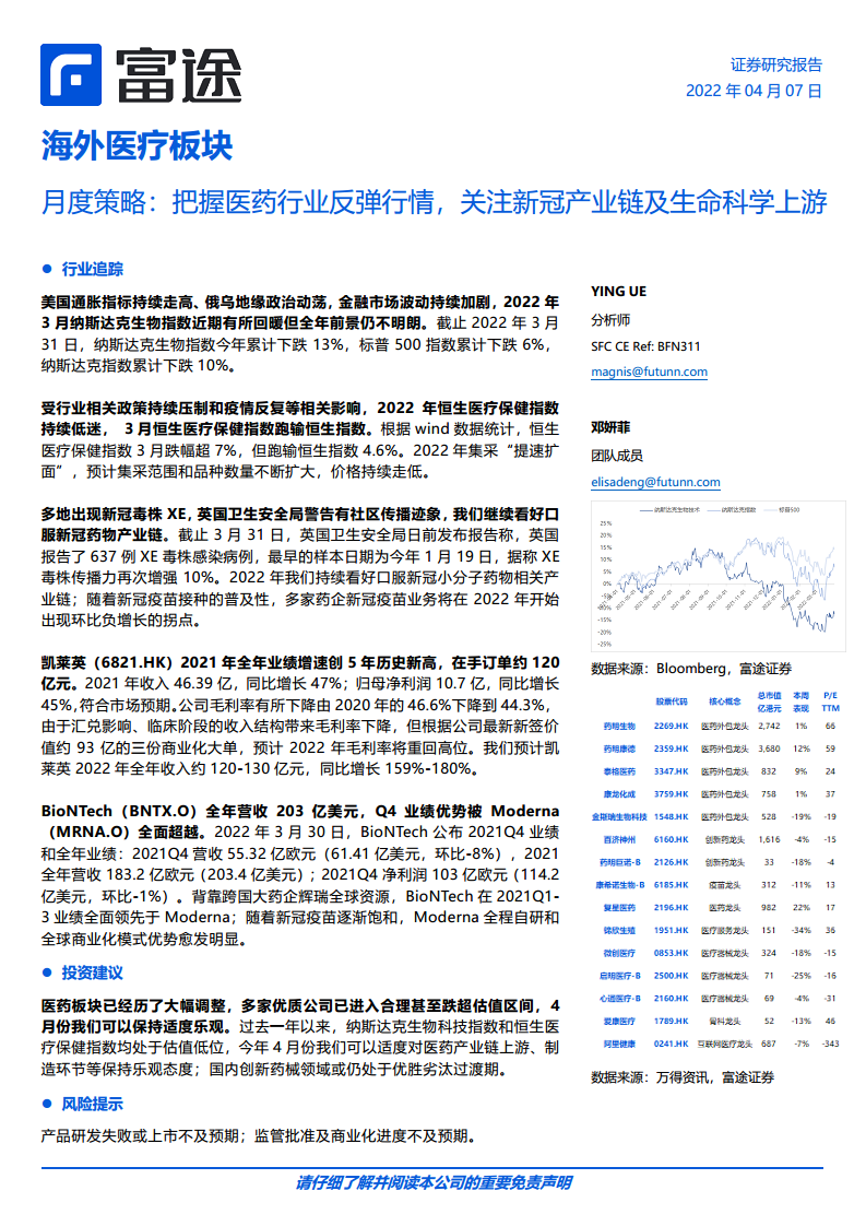 海外医疗板块月度策略:把握医药行业反弹行情,关注新冠产业链及生命科学上游