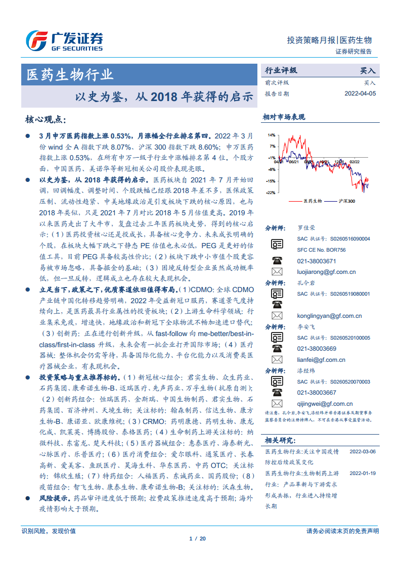 医药生物行业:以史为鉴,从2018年获得的启示