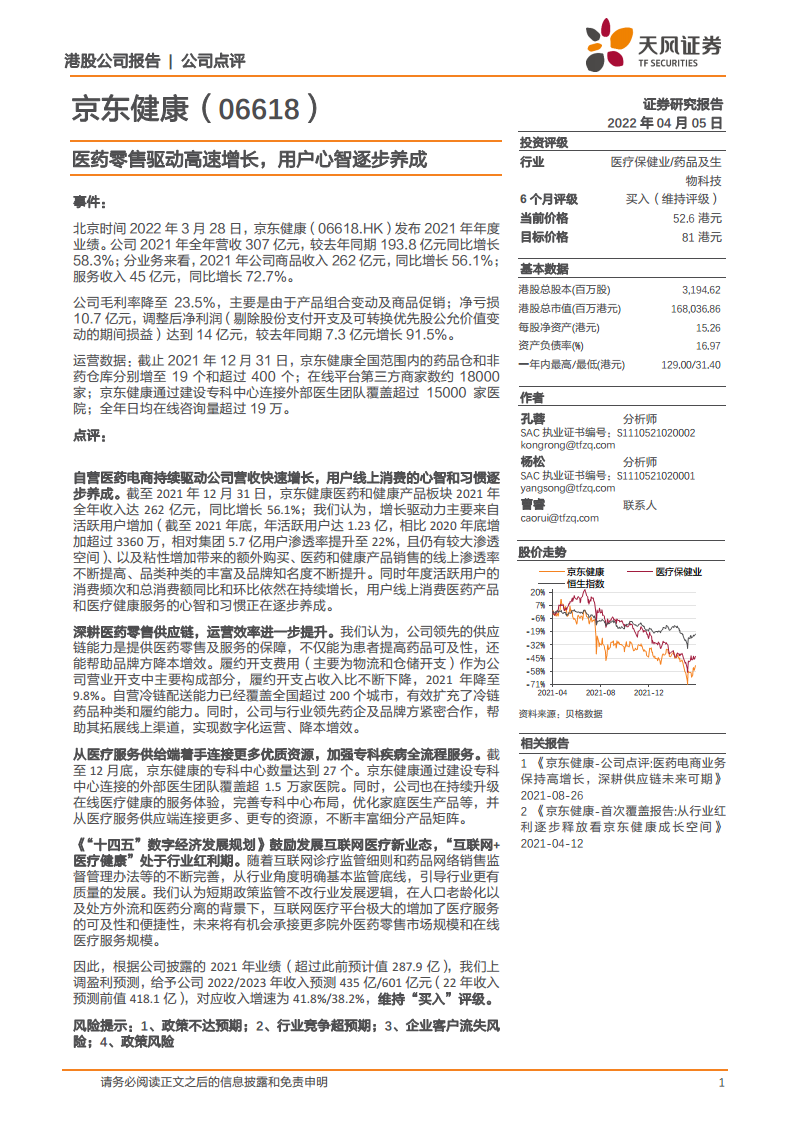 京东健康(06618):医药零售驱动高速增长,用户心智逐步养成