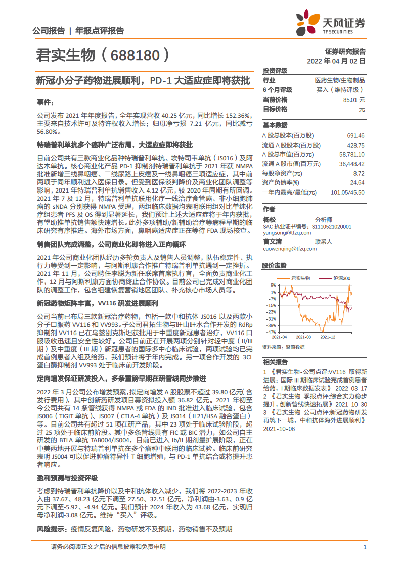 君实生物(688180):新冠小分子药物进展顺利,PD-1大适应症即将获批