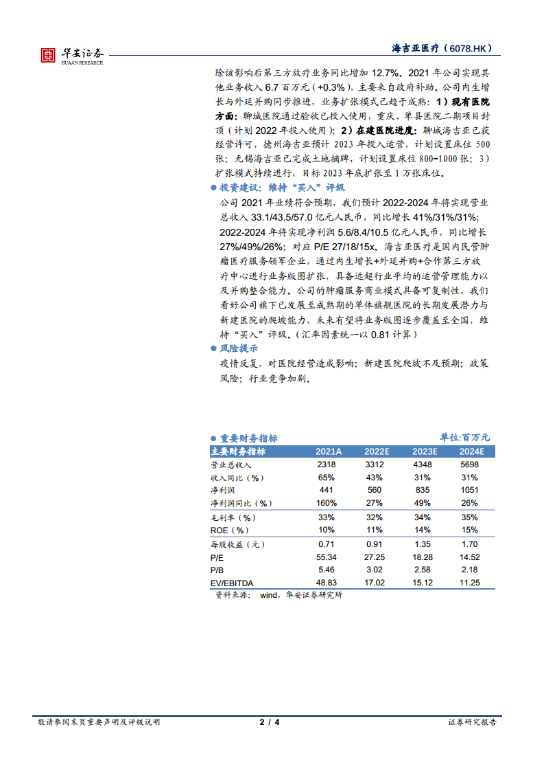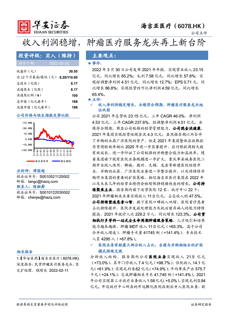 海吉亚医疗(06078):收入利润稳增,肿瘤医疗服务龙头再上新台阶