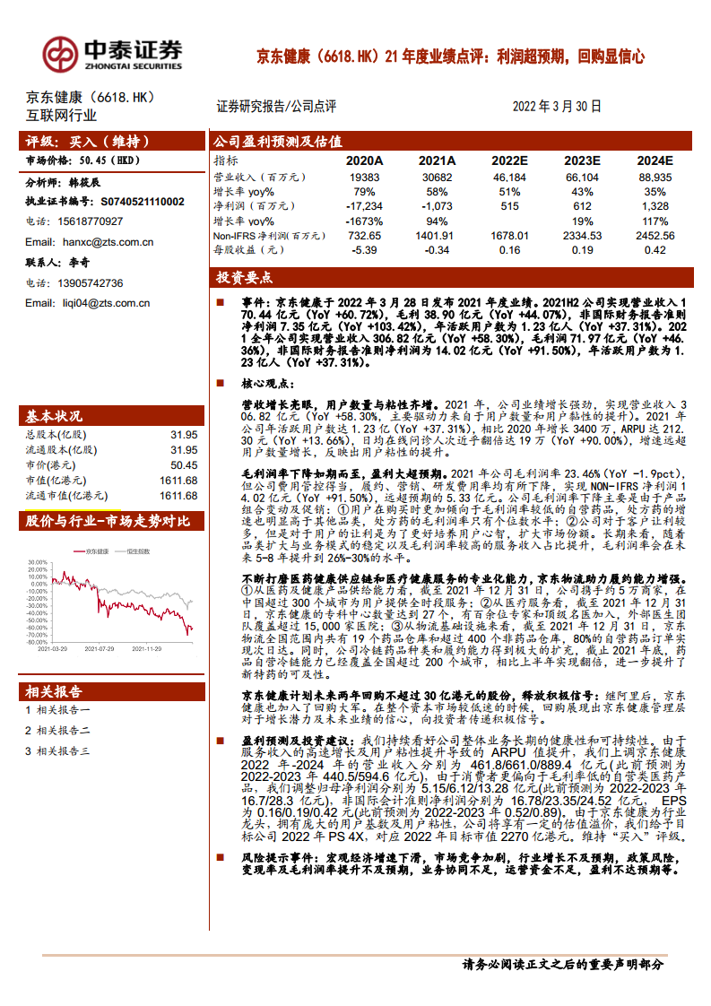 京东健康(06618):利润超预期,回购显信心
