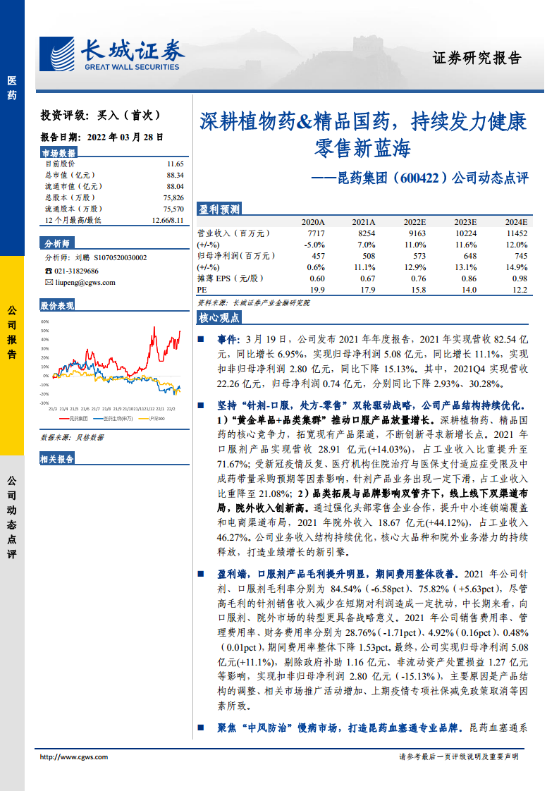 昆药集团(600422):深耕植物药&精品国药,持续发力健康零售新蓝海