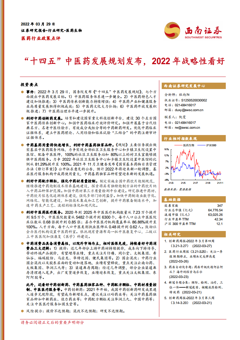 “十四五”中医药发展规划发布,2022年战略性看好
