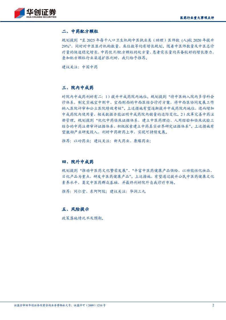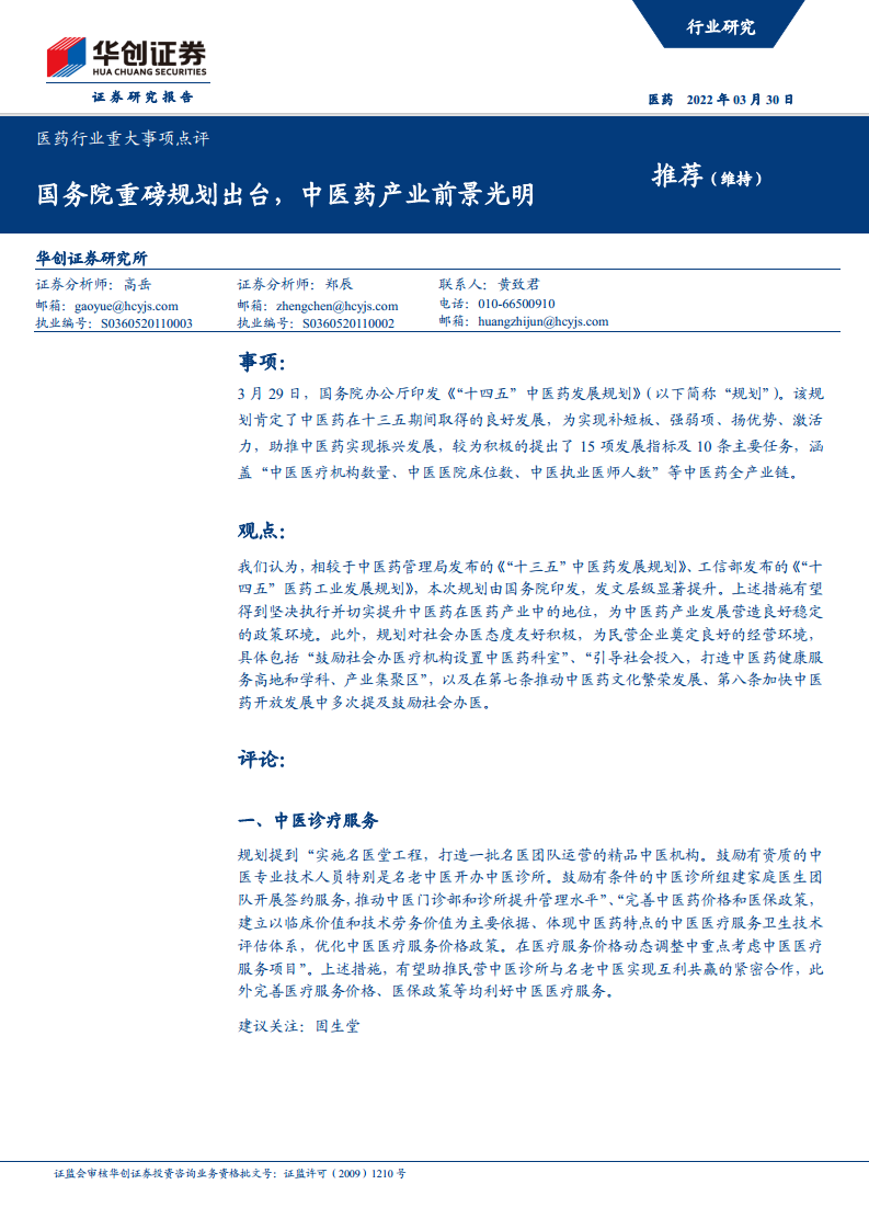 医药行业重大事项点评:国务院重磅规划出台,中医药产业前景光明