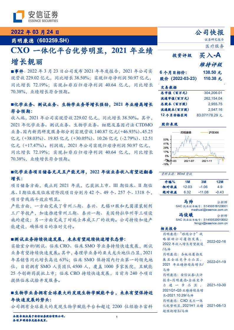 药明康德(603259):CXO一体化平台优势明显,2021年业绩增长靓丽