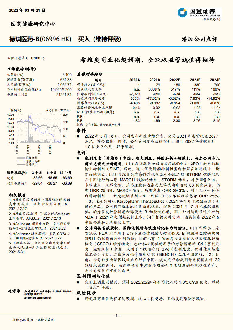 德琪医药-B(06996):希维奥商业化超预期,全球权益管线值得期待