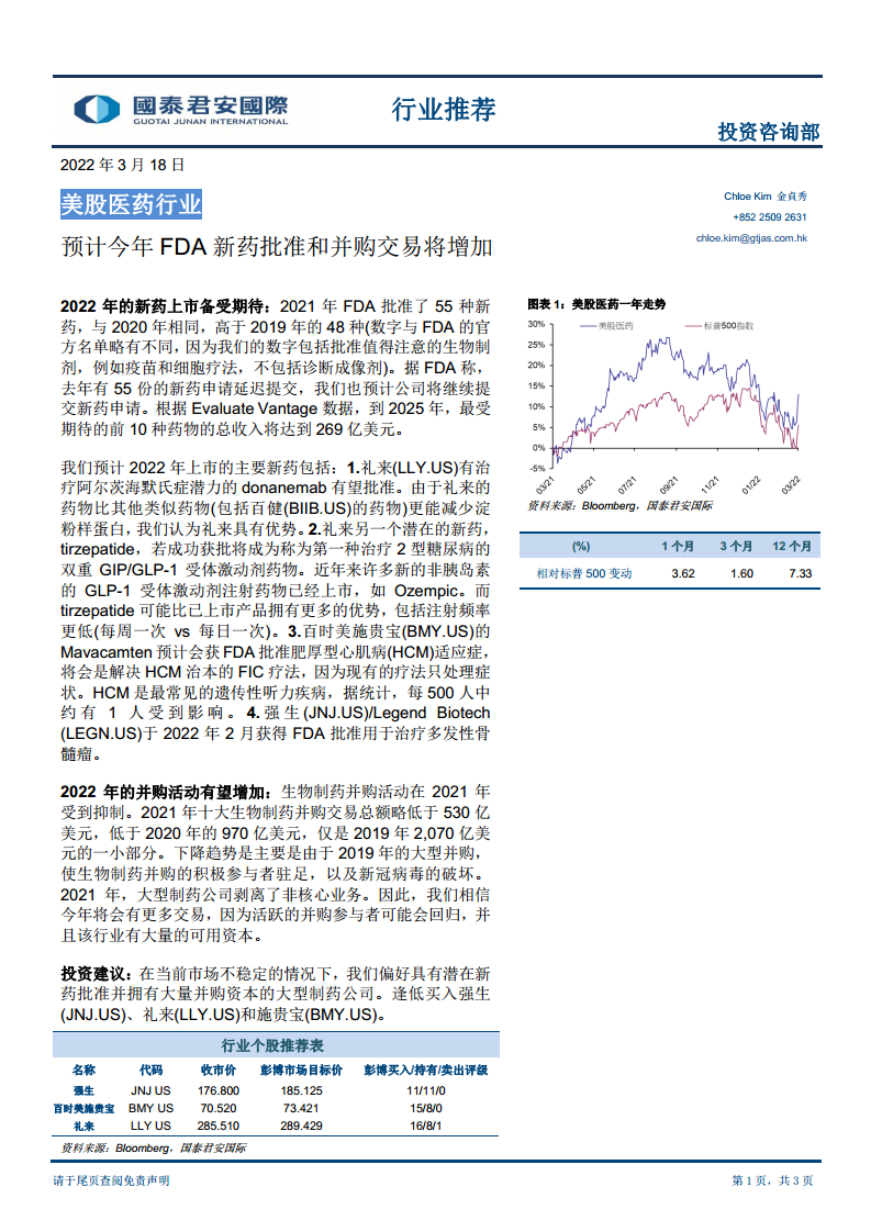 美股医药行业:预计今年FDA新药批准和并购交易将增加