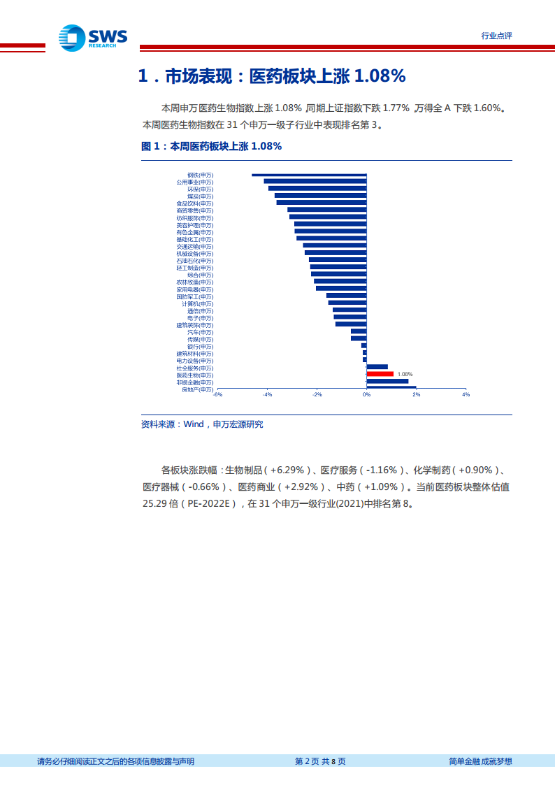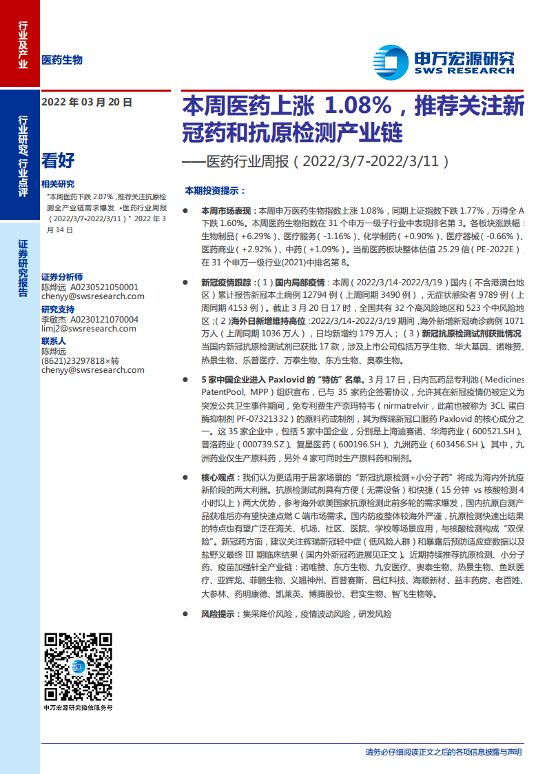 医药行业周报:本周医药上涨1.08%,推荐关注新冠药和抗原检测产业链