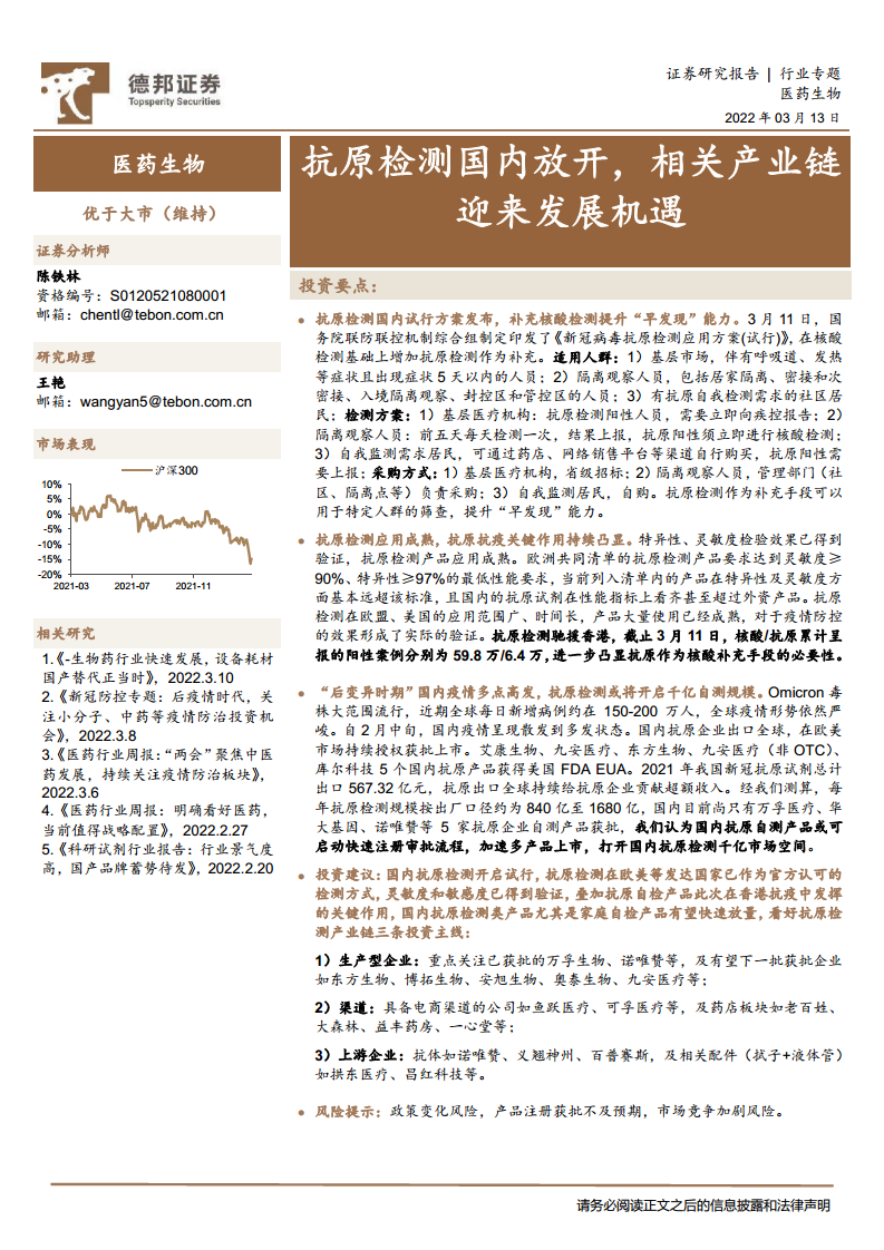 医药生物行业专题:抗原检测国内放开,相关产业链迎来发展机遇