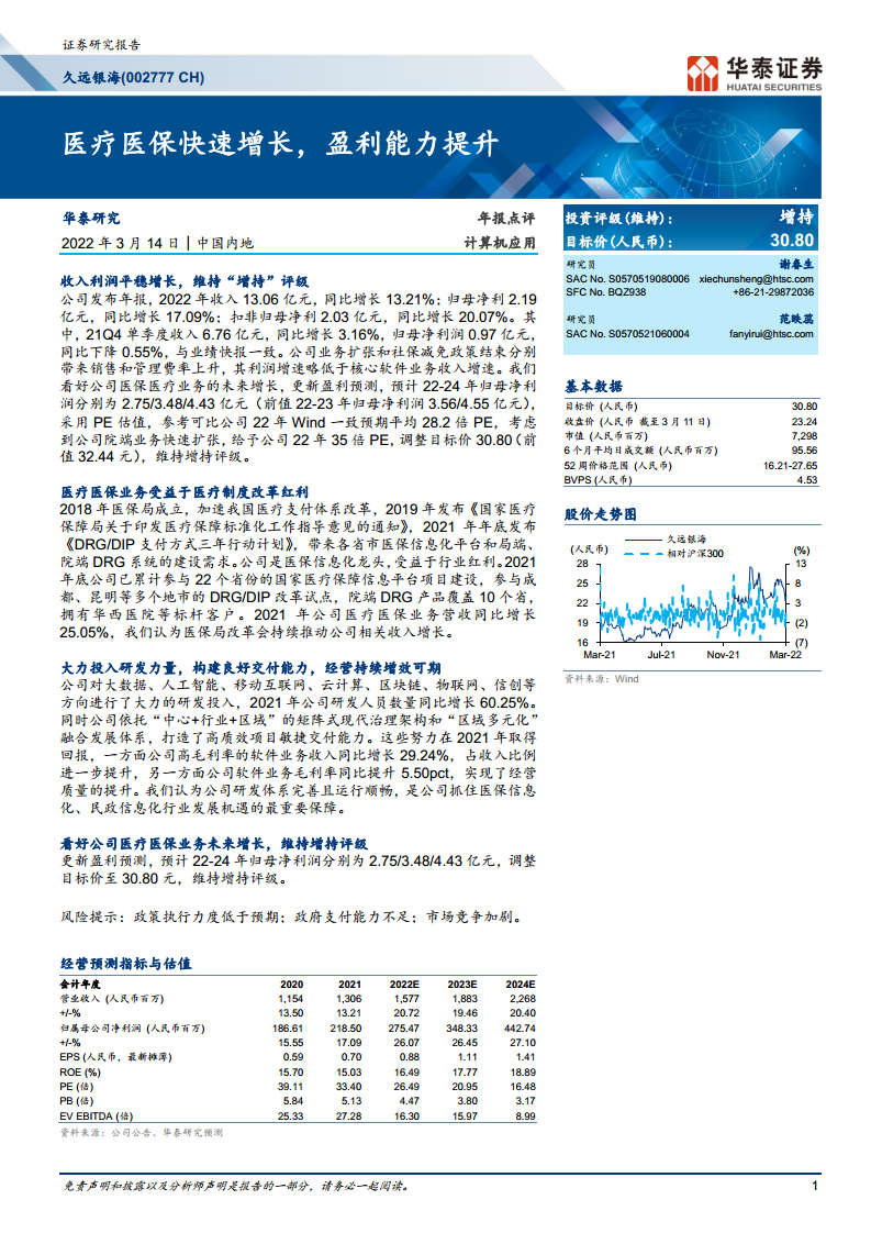 久远银海(002777):医疗医保快速增长,盈利能力提升