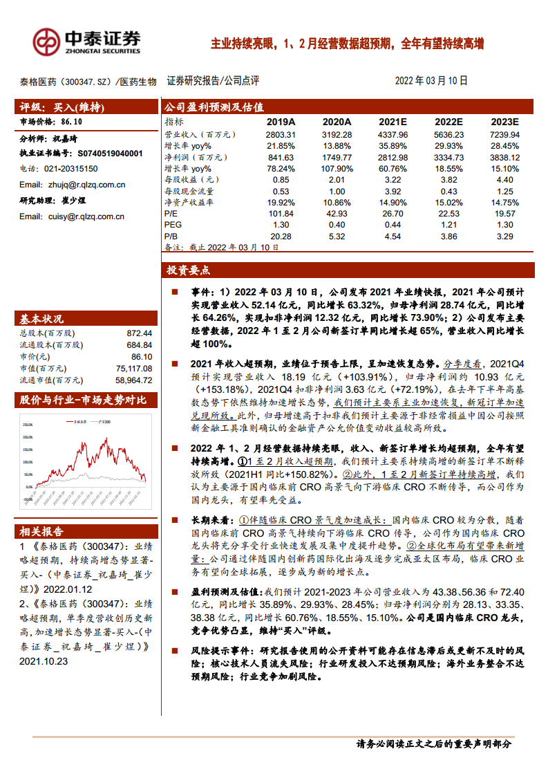 泰格医药(300347):主业持续亮眼,1、2月经营数据超预期,全年有望持续高增
