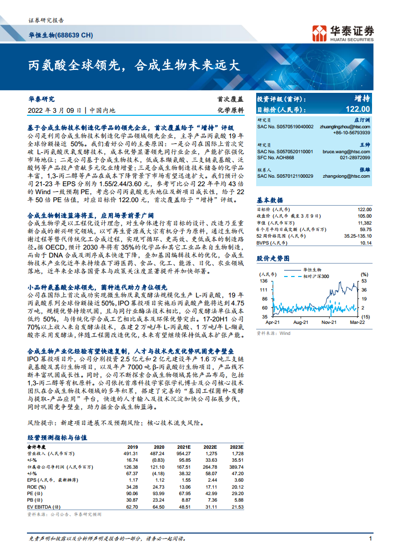 华恒生物(688639):丙氨酸全球领先,合成生物未来远大